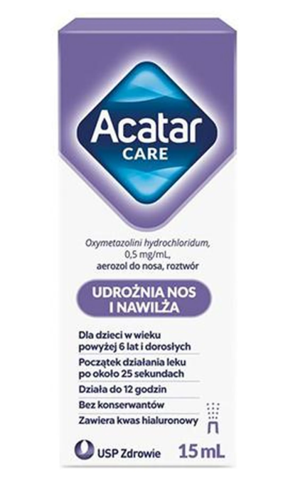 Acatar Care to leczniczy aerozol do nosa opracowany do stosowania m.in. przy ostrym i alergicznym zapaleniu błony śluzowej nosa, zatok czy ucha środkowego. Preparat przeznaczony jest do stosowania przez dorosłych oraz dzieci powyżej 6. roku życia.